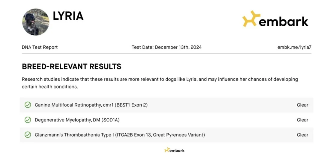 Opie has been DNA and health tested, which came back clear. OFA prelims will be done at 1 year of age.
