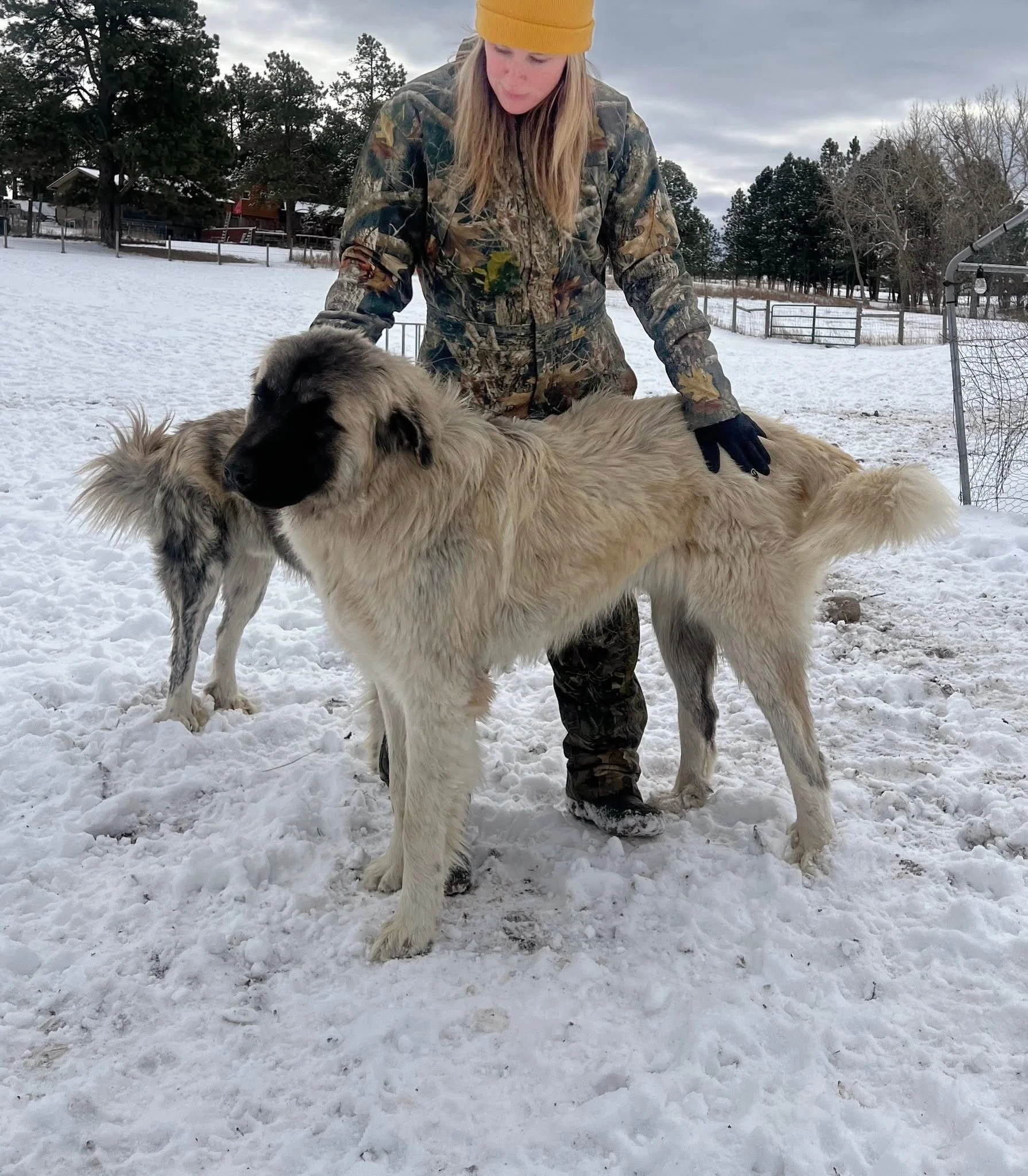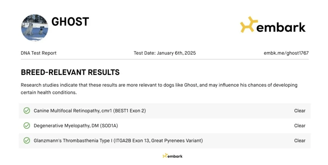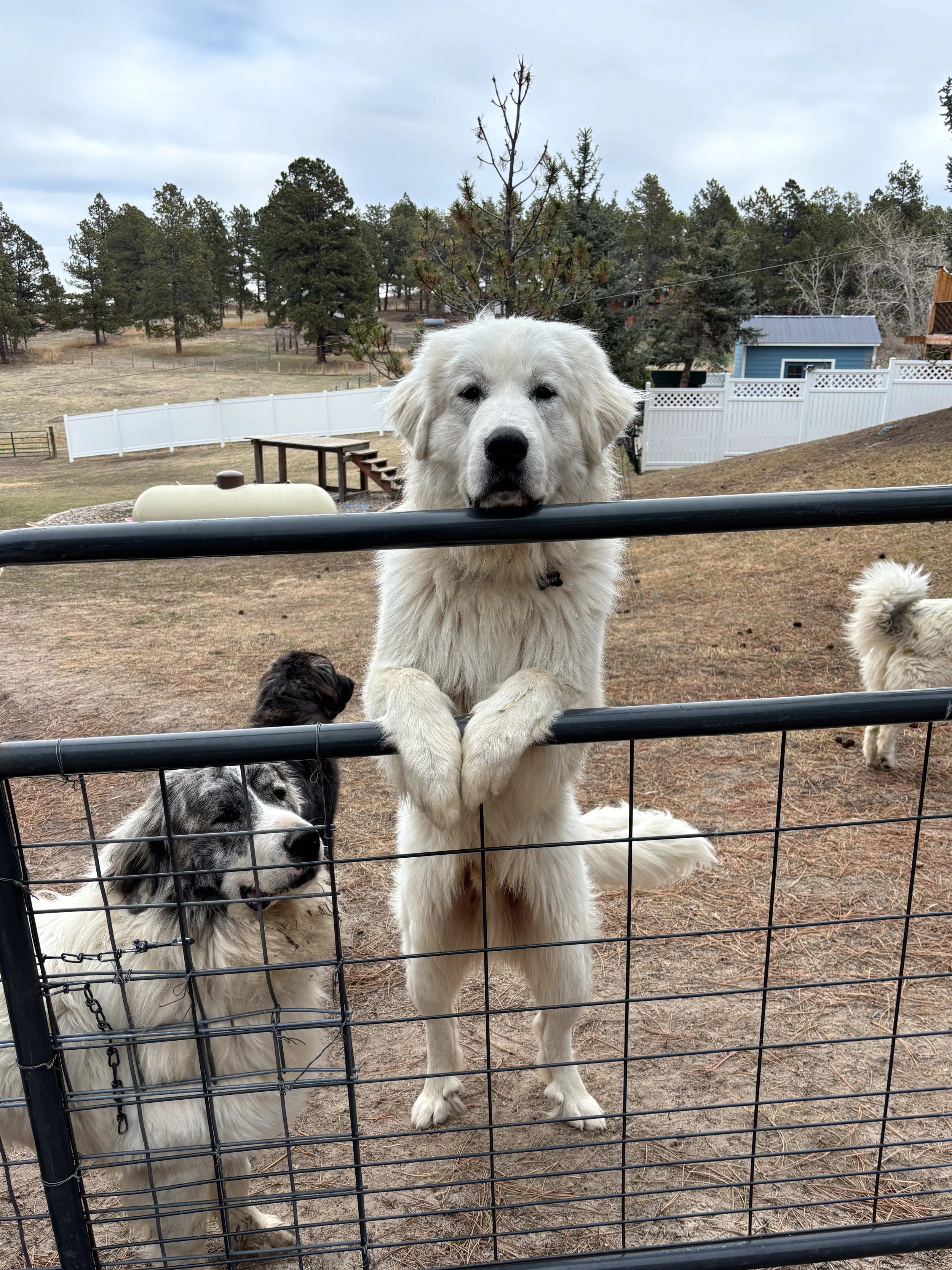 Ghost was our very first LGD! We were blown away by what an amazing dog he is, not only in appearance but in personality and guarding. He is the alpha of the herd, and every dog and livestock knows not to mess with him! He is always the first to alert to a threat and make sure the problem is delt with. If other dogs are fighting, he jumps in and breaks it up. It truly is amazing to watch him work. All that aside, his personality is what makes him the best. He absoutly loves his people! He is the first to come over in the morning and get love. He will keep putting his paw on your leg until you pet him, and once you start he wont let you stop haha! His gentle, calm, loving, and fierce personality is exactly what we look for in livestock guardians! Ghost has been DNA and health tested and has OFA testing done, which came back clear.