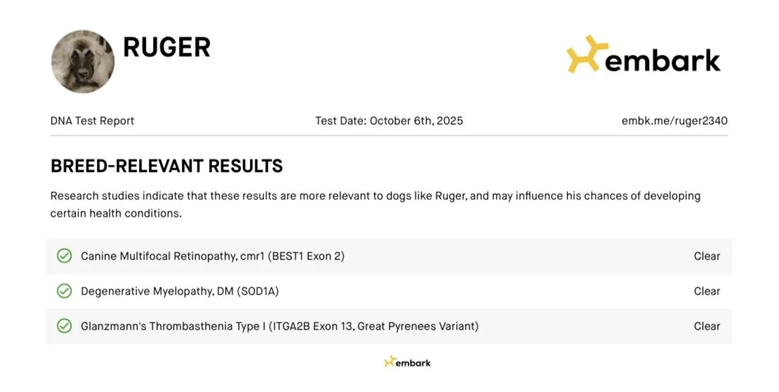 He has been DNA and health tested and will have OFA testing May 2026